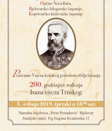U petak 3. svibnja 2019. od 18,30 sati u Studijskom odjelu Narodne knjižnice „Petar Preradović“ Bjelovar, na Trgu Eugena Kvaternika 11/2 u Bjelovaru, održat će se kolokvij povodom obilježavanja 200. godišnjice rođenja Ivana viteza Trnskog.
