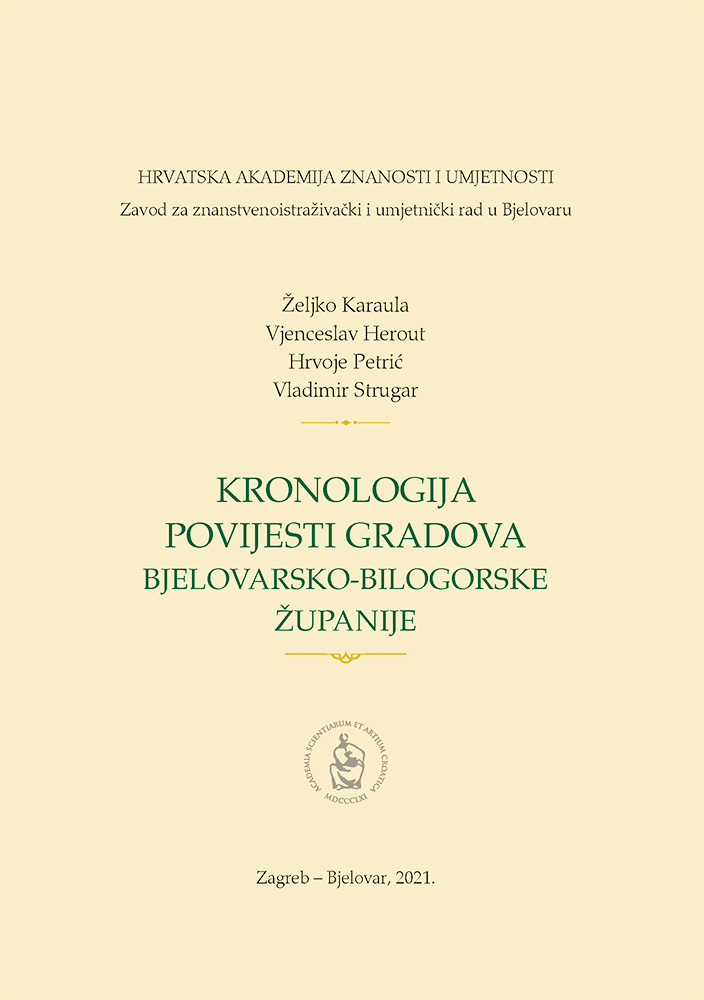 Uskoro u izdanju HAZU i Zavoda za znanstvenoistraživački i umjetnički rad HAZU u Bjelovaru izlazi nova knjiga – Kronologija povijest gradova Bjelovarsko-bilogorske županije. Autori su priloga prof. dr. sc. Hrvoje Petrić, koji je napisao kronologiju Čazme, dr. sc. Vjenceslav Herout, koji piše o Daruvaru, dok je dr. sc. Željko Karaula to učinio za tri grada: Bjelovar, Garešnicu i Grubišno Polje. Pogovor je napisao upravitelj Zavoda HAZU Bjelovar prof. dr. sc. Vladimir Strugar. Autori su svjesni da kronologija nije mogla obuhvatiti još brojne događaje, npr. one koji se odnose na djelovanje političkih stranaka i osobe koje su ih vodile ili bile uspješne na izborima. Međutim, autori se nadaju kako su članci objavljeni u časopisu Radovi Zavoda u Bjelovaru te monografije i članci koji se navode u historiografskoj i publicističkoj literaturi u ovoj knjizi važna cjelina koja pruža pouzdane spoznaje o povijesti Bjelovarsko-bilogorske županije te daje solidan temelj za nova povijesna istraživanja.